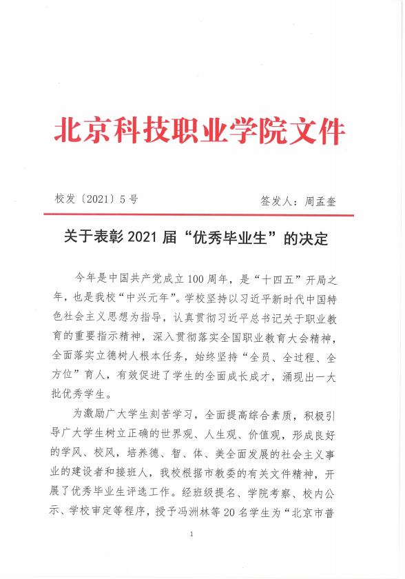 关于表彰2021届“优秀毕业生”的决定