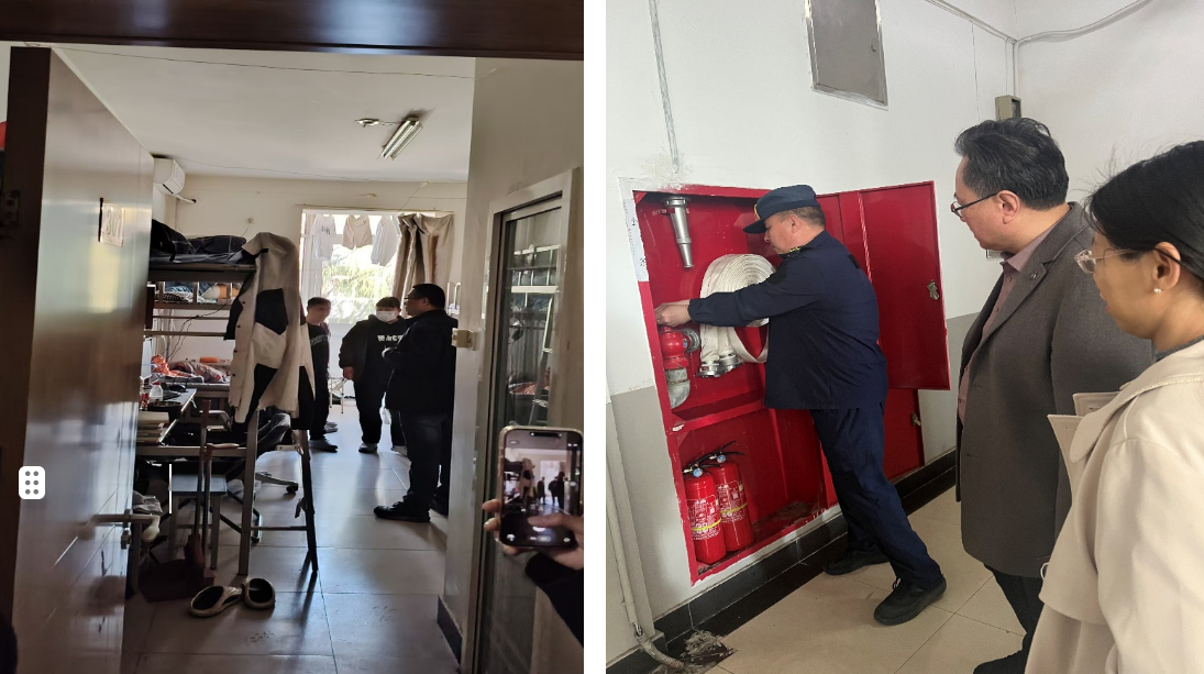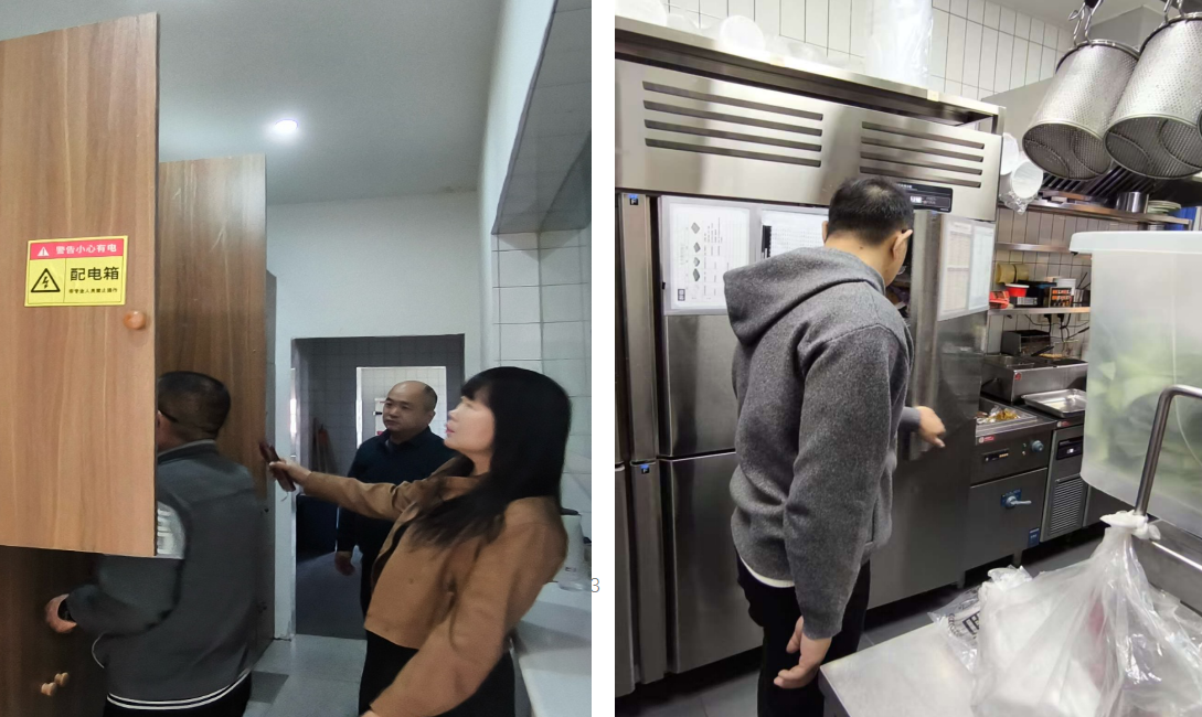 检查组重点检查宿舍和食堂用电安全、消防设施配备、疏散通道畅通情况,叮嘱工作人员加强日常巡查与安全教育,及时消除违规用电、杂物堵塞通道等隐患。围绕食材采购储存、加工制作、餐具消毒、食品留样等关键环节开展检查,强调严守食品安全底线,保障师生饮食健康。