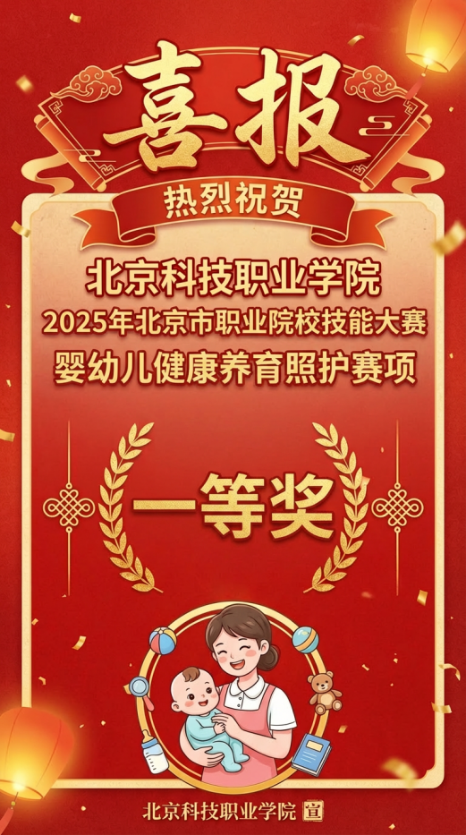 12月12日,由北京市教育委员会、北京市人力资源和社会保障局等联合主办、北京青年政治学院承办的2025年北京市职业院校技能大赛(高职组)婴幼儿健康养育照护、婴幼儿照护两项比赛圆满落幕。比赛共吸引了北京市9所院校33支参赛队99名选手同台竞技。经过激烈角逐,北京科技职业学院教育学院四支参赛队凭借扎实的专业功底、娴熟的实操技能和出色的综合素养脱颖而出,最终斩获一等奖1项、二等奖2项、三等奖1项的优异成绩,充分彰显了学校在托育技能人才队伍培养和建设方面的坚实成效与鲜明特色。